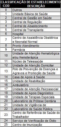 ATENÇÃO: O usuário deve inserir todas as informações de atividades que seu estabelecimento realiza. Sempre que a classificação automática resultar na opção “000 – Outros”, ficará disponível a classificação manual do tipo de estabelecimento ao operador do sistema, onde selecionará a opção de tipo que o estabelecimento de saúde se enquadra, com base nas suas características particulares. A classificação “000 – Outros” não será aceita como tipo de estabelecimento válido, sendo necessária, obrigatoriamente, a sua classificação manual.