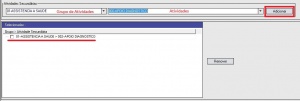 Para selecionar, como válida, a atividade secundária, o usuário, após escolha da atividade a ser adicionada, deve clicar no botão "Adicionar" (Figura 6), onde a atividade passará a constar no grid "Selecionadas:".