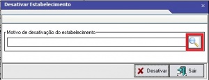 Após clicar em Desativar, será mostrada um caixa de diálogo para seleção do motivo de desativação. Clique na lupa para seleção do motivo de desativação (Figura 2). Será exibida uma lista contendo os motivos de desativação, deve-se selecionar a mais adequada ao caso.